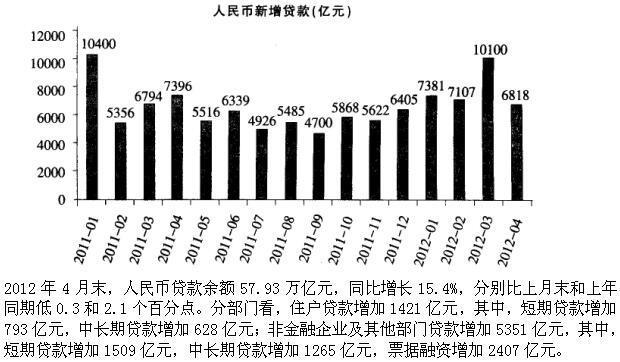 2011年全年,人民币新增贷款超过平均值的月份有几个?( ) A.2 B.3 C.4 D.52011年全年,人民币新增贷款超过平均值的月份有几个?(