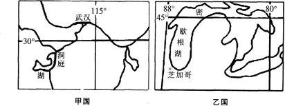 下图分别为甲、乙两国部分区域位置分布图。读图回答题。