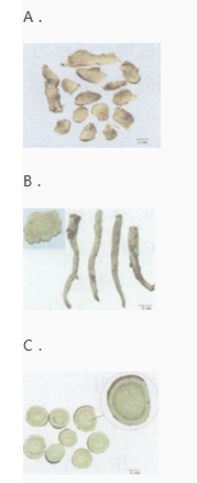 本组题考查看图识药和药材的来源。图中分别是:知母、桔梗、甘草、玄参和天花粉。
