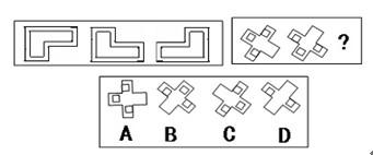 解法 1:每组的第一个图形按逆时针旋转一定角度得后面两个图形。 解法 2:两组图形的第二与第三个图都成轴对称图形。故答案为C。