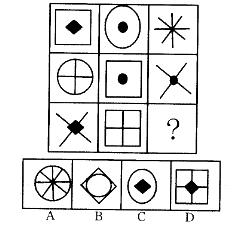 从所给的四个选项中,选择最合适的一个填入问号处,使之呈现一定的规律性: