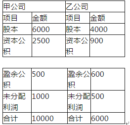 甲公司从其控股股东处以现金4200万元收购乙公司60%股权,合并日乙公司可辨认净资产账面价值6000万元,公允价值8000万元,合并日甲、乙公司简要财务报表如下,其中甲公司资本公积2500万均为股本溢价,假定甲乙公司之间未发生内部交易,则甲公司合并日编制的合并资产负债表中资本公积是( )