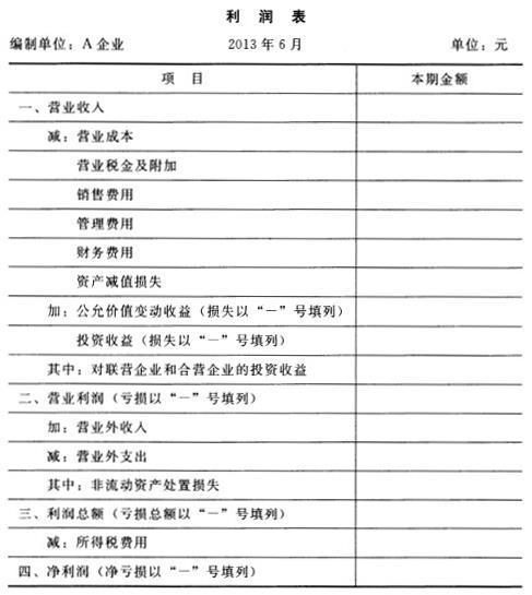 <P>A企业2013年6月发生以下经济业务:(1)6月2日,企业开出一张现金支票,从银行提取现金40000元,备发工资。(2)6月5日,企业向希望工程捐款10000元,已转账付讫。(3)6月6日,企业收回前欠货款200000元,存入开户银行。(4)6月7日,企业购入一台不需要安装的机器,入账价值为50000元,货款已通过银行划转。(不考虑相关税费)(5)6月10日,车间主任出差参加技术培训,预借差旅费5600元,以现金付讫。(6)6月14日,企业购入生产用的材料一批,材料的买价是80000元,入库前的挑选整理费是200元(假设为职工劳务支出),运输途中的合理损耗是2000元,材料已验收入库,货款尚未支付。(7)6月18日,某单位因违反销售合同,应向企业支付罚款68000元,款项已经收到送存银行。(8)6月22日,用存款支付上月应缴所得税7000元。(9)6月25日,企业为营销产品参展糖酒会,支付展厅柜台租用费60000元,用银行存款支付。(10)6月26日,用银行存款支付车间用水电费4200元。(11)6月27日,销售多余材料一批,价值1000元.款项尚未收到。(不考虑相关税费)(12)6月28日,财务部购买复印纸和墨盒,价值300元,用现金付讫。(13)6月29日,企业销售产品一批,售价620000元,款项尚未收到,对方开出一张商业承兑汇票抵付货款。(不考虑相关税费)(14)6月30日,进行材料领用汇总。本月生产用原材料300000元,车间一般耗用10000元,销售部耗用5000元,其他管理部门耗用1200元,其中,采购部耗用500元,财务部耗用600元,信息部耗用100元。(15)6月30日,进行工资费用汇总。本月生产产品工人工资32000元,车间管理人员工资18000元,销售部门工资20000元,其他管理部门工资6000元,其中,采购部3200元,财务部耗用2100元,信息部耗用700元。(16)6月30日,按上述工资的14%计提福利费。(17)6月30日,结转本月制造费用。(18)6月30日,假设本月末无在产品,结转完工产品成本。(19)6月30日,结转已销产品成本140330元。(20)6月30日,结转已销多余材料成本450元。(21)6月30日,结转所有收益类账户。(22)6月30日,结转所有费用类账户。(23)6月30日,假设本月没有纳税调整项目,按25%计算本月应交所得税。(24)6月30日,结转本月所得税费用。</P><P>要求:</P><P>(1)编制经济业务事项(1)~(24)的会计分录。</P><P>(2)根据以上资料填制A企业6月份利润表。</P><P>