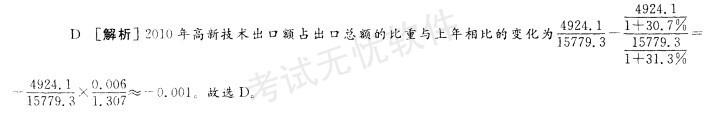 2010年高新技术产品出口额占出口总额的比重与上年相比约( )。