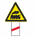 这个标志是何含义? A、距无人看守铁路道口50米 B、距有人看守铁路道口50米 C、距有人看守铁路道口100米 D、距无人看守铁路道口100米