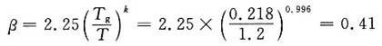 μ1=1-e-6.6(101355-300)×10-4≈1.0 μ2=e-0.916(15-5)2×10-3=0.91 μ=0.6μ1+0.4μ2=0.6×1+0.4×0.91=0.964 Tg=0.7-0.5μ=0.7-0.5×0.964=0.218(s) k=0.9+0.1μ=0.9+0.1×0.964=0.996