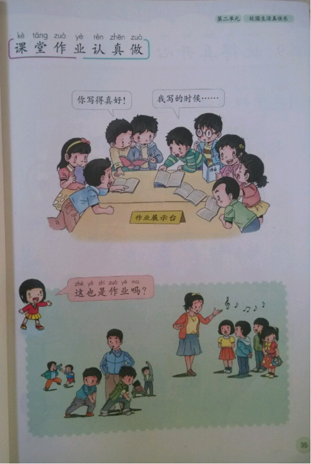 二、考题解析【教学过程】环节一:导入新课(故事导入)讲述故事《高兴的花花》,花花是小学一年级的学生,今天在学校,老师夸她的课堂作业写得干净、整齐,在课堂上被老师表扬了,于是花花回家就把这个好消息告诉了妈妈。妈妈听了非常高兴,也对花花说:宝贝真棒!提问:花花为什么受到表扬?你觉得什么事情让花花妈妈最高兴?学生回答,教师进行引导:因为花花的课堂作业做得好,所以受到了夸奖,妈妈也非常高兴。进而引入新课《课堂作业认真做》。环节二:新课讲授1.书写作业认真做首先,我们来学习最常见的书写作业怎么做。开展“作业展示台”活动,将班级里的优秀作业放入展示台让学生观察。提问:大家觉得他们的作业好在哪里?并请优秀作业的主人分享他们把作业做好的经验。根据学生的回答,教师将与学生一起总结出:优秀作业字迹工整、卷面干净、准确率高。要想做出这样的作业需要做到:认真记录作老师所提出的作业要求,做作业时要静下心认真做,字迹工整,做完了之后需要检查以保证正确率。2.其他作业多练习过渡:刚刚所展示的都是需要我们通过书写完成的作业,除此之外,我们在平时的学习中,还有一些是不需要用到纸和笔就可以完成的,接下来我们就来看看这样的作业要怎么完成。展示图片:一是体育课上广播体操的学习,有的小朋友在追逐打闹,没有按老师的要求完成动作;二是音乐课上的演唱练习,有个小朋友认为自己不出声也没人知道,于是没有和大家一起唱歌。提问:上图中的几位小朋友的做法对吗?这些不用交的课堂作业应该认真完成吗?根据学生的回答,教师与学生一起总结:这些也都是我们在课堂上要完成的作业,对我们的进步意义重大,不管哪一样课堂作业,我们都要听清楚要求,多多思考,多多练习,认真完成,这样我们的作业一定能完成得很棒。环节三:巩固提高播放《作业歌》:作业要求听仔细,样样作业认真做,完成作业要检查,字迹端正又整洁。利用儿歌的形式加深学生的印象并方便其记忆。环节四:小结作业小结:根据本框的内容特点及学生学习的特点,教师结合板书内容,采用归纳式小结,使同学们对本节课形成更清晰的认识。作业:请同学们课下观看视频《小熊尼奥做作业》。[img]/upload/tiku/397/10752710_1.png[/img]【答辩题目解析】1.说一说你本堂课的教学方法?【参考答案】根据教材内容及学生的实际情况,我采用了谈话法、情境教学法、活动教学法。谈话法是师生互相交流的一种方法,来引导学生思考、学习,这一方法主要体现在教学过程中对于学生的提问;活动教学法主要在第一个知识点——书写作业认真做这一内容的学习,采用了作业展示台的活动来调动学生的积极性;情境教学法主要在第二个知识点的学习上,通过图片再现教学情境,激发学生的学习兴趣。2.说说怎样认真完成不同类型的课堂作业。【参考答案】不管什么类型的作业,首先学生需要做到的是认真听老师提出的作业要求,做书写作业时要静下心认真做,字迹工整,做完了之后需要检查以保证正确率;非书写作业,就需要多多思考,多多练习,认真完成。这样我们的作业一定能完成得很棒。