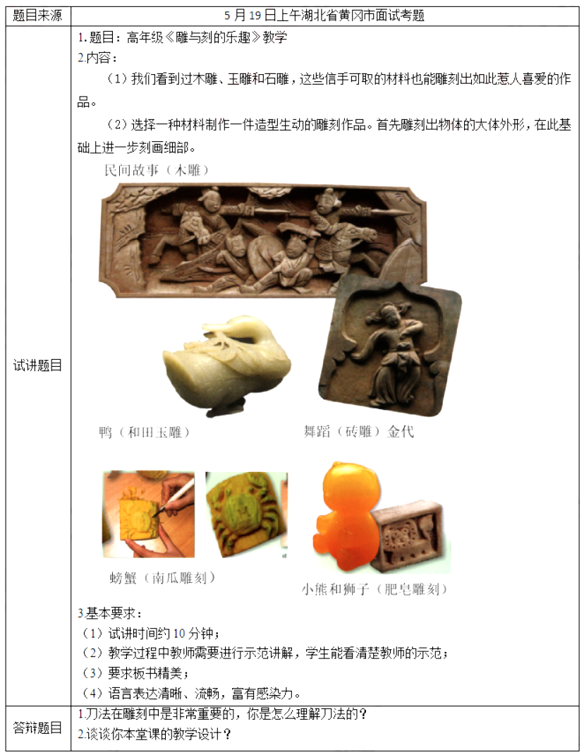 小学美术《雕与刻的乐趣》 一、考题回顾
