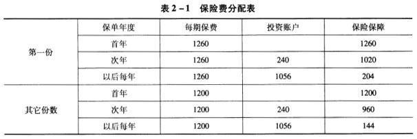 李先生购买了某保险单5份。保险费分配如表2-1所示。(单位:元)