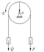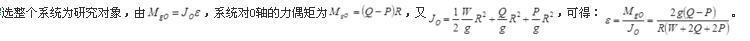 均质圆盘重W,半径为R,绳子绕过圆盘,两端各挂重Q和P的物块,绳与盘之间无相对滑动,且不计绳重,则圆盘的角加速度为( )。