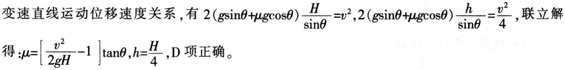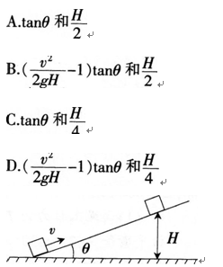 物块沿倾角为0的斜坡向上滑动,当物块的初速度为v时,上升的最大高度为H.如图所示;当物块的初速度为v/2时,上升的最大高度记为h。重力加速度大小为g。物块与斜坡间的动摩擦因数μ和h分别为( )。