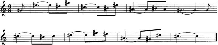 旋律中出现了#G、#E、#D、#C、#B、#A、#F,最后音落在#C上,符合#C大调(七个升号)的条件,所以为#C自然大调。