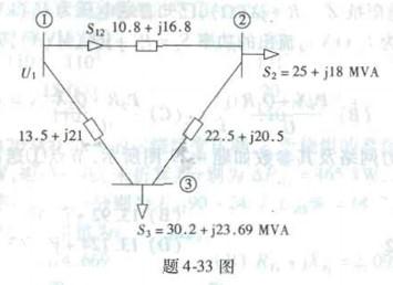 有一环网及其参数如题4-33图所示,节点①为电源,则该环网的功率分点及其功率的分