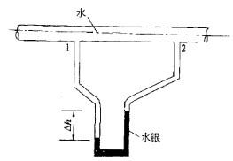图示有压水管,断面1及2与水银压差计相连,水管水平,压差计水银面高差Δh= 30