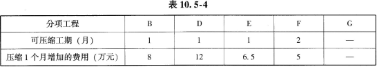 第6个月末检查工程进度时,B工作完成计划进度的1/2,C工作刚好完成,D工作完成计划进度的1/3。问题:1.计算各分项工程的分部分项工程费、每月应完成的分部分项工程费,把计算结果填入表10.5-2中,并列式计算工程预付款。2.根据第6个月末检查结果,在图10.5-2上绘制前锋线,并分析第6个月末B、C、D三项工作的进度偏差,如果后6个月按原计划进行,分析说明B、D工作对工期的影响,填入表10.5-3。3.若承包方决定在第6个月后调整进度计划以确保实现合同工期,应如何调整(有关分项工程可压缩的工期和相应增加的费用见表10.5-4)说明理由。