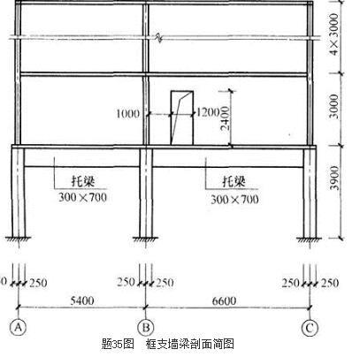 某抗震设防烈度7度(0.1g)总层数为6层的房屋,采用底层框架-抗震墙砌体结构,某一榀框支墙梁剖面简图如题35图所示,墙体采用240mm厚烧结普通砖、混合砂浆砌筑,托梁截面尺寸为300mm×700mm。试问,按《建筑抗震设计规范》GB 50011—2010要求,该榀框支墙梁二层过渡层墙体内,设置的构造柱最少数量(个),与下列何项数值最为接近?