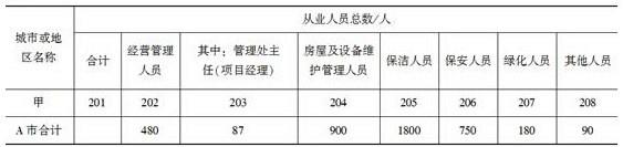 A市物业管理行业职工人数调查汇总表如表7-3所示。表7-3A市物业管理行业职工人数调查汇总表表号:物业管理综2表制表机关:住建部批准机关:国家统计局填报单位(盖章)批准文号:国统函(2012)×××号