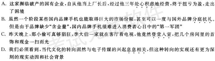下列句子没有语病的是()。A.这里,听不到战马的嘶鸣,更没有勇士的荣耀,只有蓝色的海水激起的丛丛白色的浪花,拍打着岩石B.就议论文体而言,准确就是独一无二,鲜