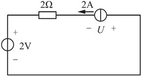 在该电路中,有电压源、电流源和电阻三个电路元件,则可列出该电路的KVL方程为U+2Ω×2A+2V=0,解得U=-6V。
