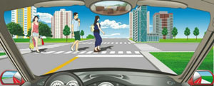 遇到这种情形时,应怎么办?A、从行人前方绕行 B、停车让行人先行 C、从行人后方绕行 D、鸣喇叭提醒行人