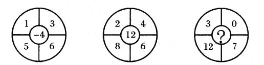 (1 + 3)x(5 - 6) = - 4,(2 + 4)x(8 - 6)=12,(3 + 0)x(12 - 7) = 15,故问号处应为15。
