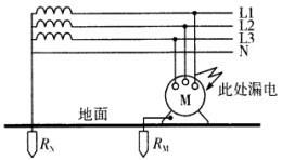 对地电压指带电体与零电位大地之间的电位差。下图为TT系统[即配电变压器低压中性点(N点)直接接地,用电设备(M)的外壳也直接接地的系统]示意图。已知低压中性点接地电阻R