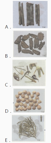 试卷附图中,图2—18所示的药材为肉桂,来源于樟科植物。图2—19所示的药材为肉苁蓉,来源于列当科植物。图2—20所示的药材为穿心莲,来源于爵床科植物。图2—21所示的药材为豆蔻,来源于姜科植物。图2—22所示的药材为麻黄,来源于麻黄科植物。故87题选B。