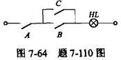 由开关组成的电路如图7-64所示,设开关合上为“1”,断开为“0”;电灯亮为“1”,灭为“0”。则该电路的逻辑关系是()。
