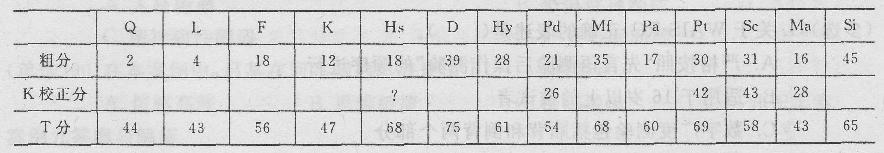 K分的知识点,从测验结果可以得出Pd+0.4K=21+0.4K=26,K=12,Hs原始分为18,K=12,根据校正公式Hs+0.5K,得出Hs量表的K校正分应当为24分。第一,根据题目要求,需要关注的要点是:是单选还是多选,MMPI,测验结果的解释。第二,考察对在中国常模中MMPI测验结果的解释以及效度量表的解释应用。1.知识点:分数解释。MMPI根据经验效标法编制而成.宋维真教授修订版本共包括566个自我报告形式的题目,如果只为了精神病临床诊断使用,可做前399题。在中国常模中,MMPI的T分在60分以上,便可能有病理性异常表现或某种心理偏离现象。2.效度量表的代表意义和分数解释。Q若在前399题中原始分超过22分.若在566版中原始分数超过30分,提示临床量表不可信。K(Correction)校正分量表,在以下5个量表的原始分数上分别加上一定比例的K分:Hs+0.5K;Pd+0.4K;Pt+1.0K;Sc+1.0K;Ma+0.2K。