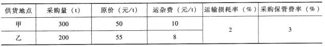 某材料自甲、乙两地采购,相关信息如下表所示,则其材料单价为()元/t。