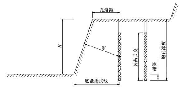 台阶爆破参数示意图