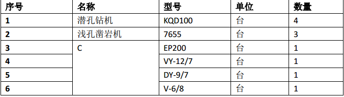 施工单位根据爆破施工方案、工程量、施工进度计划、施工质量要求、现有机械技术状况等配置了机械设备,石方爆破主要机械设备如下表: