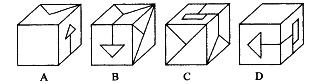 左边给定的是纸盒的外表面,下面哪一项能由它所折叠而成?()