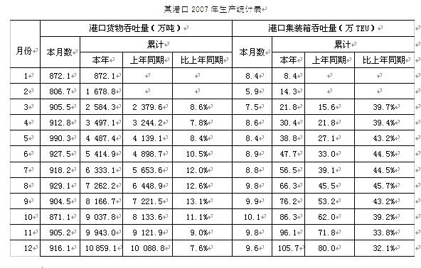 第一步,分析问题。2006年各月的“港口货物吞吐量”是多少?2007年各月的“港口货物吞吐量”是多少? 第二步,定位数据。统计表第一、二、四列的数据。 第三步,估算。 因为表中所给2006年各月的港口货物吞吐量是“累计”数据,因此,需要根据统计表第四列的“上年同期”数据逐月相减来得到。计算可知,2006年共有3个月(10、11、12月)的港口货物吞吐量高于900万吨。 从统计表第二列的数据可以直接看出,2007年各月的港口货物吞吐量高于900万吨的月份共有9个月(3、4、5、6、7、8、9、11、12月)。 由此可知,2006年4月到2007年12月间,港口货物吞吐量高于900万吨的月份有:9+3=12个。 所以,正确选项是C。
