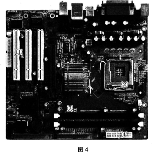 某品牌的电脑主板如图4所示,①、②、③、④处可以接入的硬件是()。