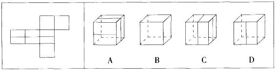 左边三个图形给出了同一个立体图形的不同侧面,右边四个图形中只有一个与该立体图形相