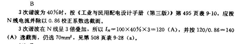3次谐波为40%时,导线截面为( )。A. 50mm2; B. 70mm2; C. 120mm2; D. 185mm2。