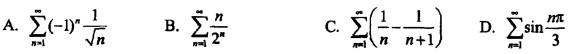 提示:[img]/upload/tiku/36/2206008_1.jpg[/img]是交错级数,[img]/upload/tiku/36/2206008_1_1.jpg[/img]故收敛;利用比值判别法知级数[img]/upload/tiku/36/2206008_1_2.jpg[/img]收敛;对于[img]/upload/tiku/36/2206008_1_3.jpg[/img],其部分和数列[img]/upload/tiku/36/2206008_1_4.jpg[/img]1,故收敛,所以应选D。