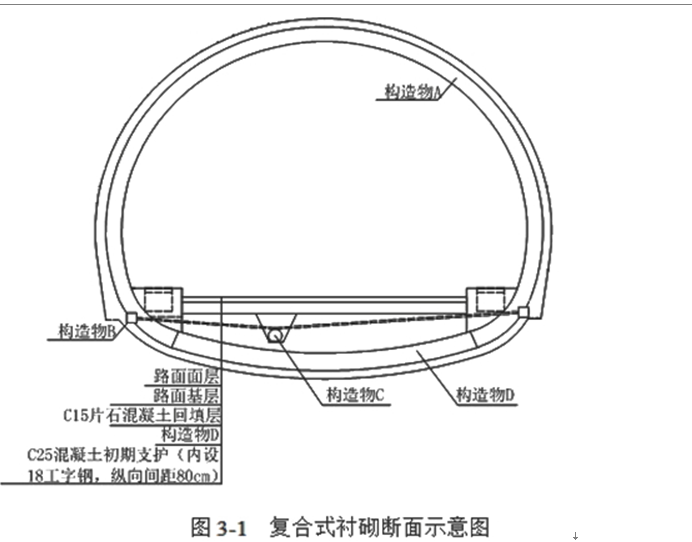(1)、属于曲墙式。A是二次衬砌,B是排水盲沟,C是中心排水管沟,D是仰拱。(2)、E是安装导管,F是注浆管路安装。(3)、喷射砼应由下而上顺序作业;钢拱架与围岩间隙必须用喷射砼填塞。(4)、砼浇筑两侧边墙采用插入式振动器,底部采用附着式振捣器。