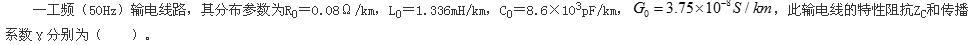 A. 398Ω,1.074×10-3/km B. 398∠-5°Ω,1.074×10—3∠84.2°/km C. 199Ω,22.5×10-3/km D. 1.074∠-9.4°Ω,39.8∠94.6°/km