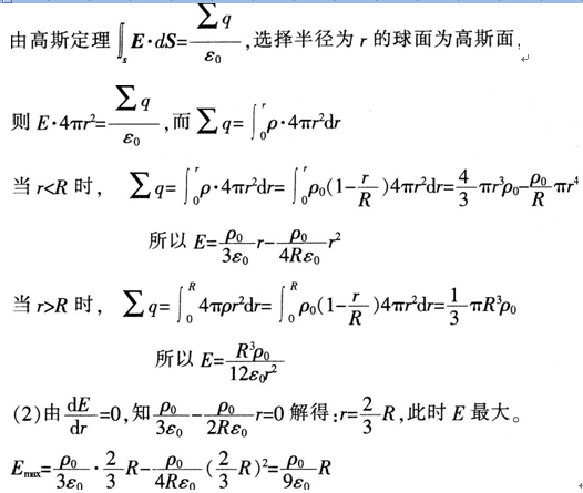 距离。试求: (1)球内外的场强分布:? (2)r为多大时,场强最大?该点的场强E=?