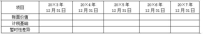 (2018年)甲公司适用的企业所得税税率为25%,经当地税务机关批准,甲公司自20×1年2月取得第一笔生产经营收入所属纳税年度起,享受“三免三减半”的税收优惠政策,即20×1年至20×3年免交企业所得税,20×4年至20×6年减半,按照12.5%的税率交纳企业所得税。甲公司20×3年至20×7年有关会计处理与税收处理不一致的交易或事项如下:(1)20×2年12月10日,甲公司购入一台不需要安装即可投入使用的行政管理用A设备,成本6 000万元,该设备采用年数总和法计提折旧,预计使用5年,预计无净残值。税法规定,固定资产按照年限平均法计提的折旧准予在税前扣除。假定税法规定的A设备预计使用年限及净残值与会计规定相同。(2)甲公司拥有一栋五层高的B楼房,用于本公司行政管理部门办公。迁往新建的办公楼后,甲公司20×7年1月1日与乙公司签订租赁协议,将B楼房租赁给乙公司使用。租赁合同约定,租赁期为3年,租赁期开始日为20×7年1月1日,年租金为240万元,于每月末分期支付。B楼房转换为投资性房地产前采用年限平均法计提折旧,预计使用50年,预计无净残值;转换为投资性房地产后采用公允价值模式进行后续计量。转换日,B楼房原价为800万元,已计提折旧为400万元,公允价值为1 300万元。20×7年12月31日,B楼房的公允价值为1 500万元。税法规定,企业的各项资产以历史成本为基础计量;固定资产按照年限平均法计提的折旧准予在税前扣除。假定税法规定的B楼房使用年限及净残值与其转换为投资性房地产前的会计规定相同(3)20×7年7月1日,甲公司以1 000万元的价格购入国家同日发行的国债,款项已用银行存款支付。该债券的面值为1 000万元,期限为3年,年利率为5%(与实际利率相同),利息于每年6月30日支付,本金到期一次付清。甲公司根据其管理该国债的业务模式和该国债的合同现金流量特征,将购入的国债分类为以摊余成本计量的金融资产。税法规定,国债利息收入免交企业所得税。(4)20×7年9月3日,甲公司向符合税法规定条件的公益性社团捐献现金600万元。税法规定,企业发生的公益性捐赠支出不超过年度利润总额12%的部分准许扣除。其他资料如下:第一,20×7年度,甲公司实现利润总额4 500万元。第二,20×3年初,甲公司递延所得税资产和递延所得税负债无余额,无未确认递延所得税资产的可抵扣暂时性差异的可抵扣亏损,除上面所述外,甲公司20×3年至20×7年无其他会计处理与税收处理不一致的交易或事项。第三,20×3年至20×7年各年末,甲公司均有确凿证据表明未来期间很可能获得足够的应纳税所得额用来抵扣可抵扣暂时性差异。第四,不考虑除所得税以外的其他税费及其他因素。要求:(1)根据资料(1),分别计算,甲公司20×3年至20×7年各年A设备应计提的折旧,并填写完成下列表格。