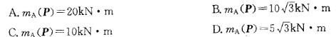 图示力P的大小为2kN,则它对点A之矩的大小为:
