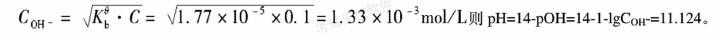 一元弱碱的电离平衡中,