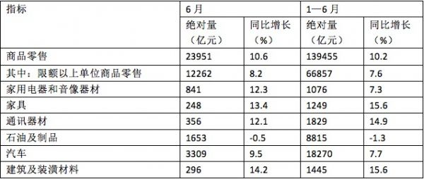 2016年6月份,我国社会消费品零售总额26857亿元,同比增长10.6%,环比