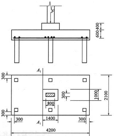 某柱下阶梯式承台如图所示,方桩截面为0.3m×0.3m,承台混凝土强度等级为C4