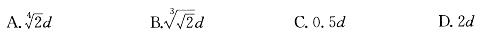 直径为d的实心圆轴受扭,若使扭转角减小一半,圆轴的直径需变为:
