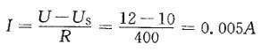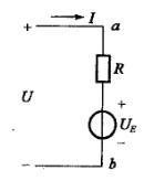 如图所示电路,U=12V,UE=10V,R=0.4kΩ,则电流I等于: A. 0. 055A B. 0. 03A C. 0. 025A D. ...