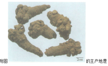 本组题考查根及根茎类药材的主产地及识图。图17为黄芩,图18为三七。黄芩主产于河北、山西、内蒙古、辽宁等省区。三七主产于云南文山,广西田阳、靖西、百色等地。