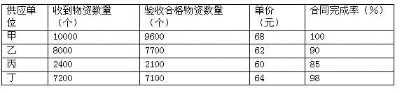 某厂对某零件A的采购量非常大,且需用量稳定,该厂采用集中采购的组织形式,因某些原因,该厂计划由向多家订购改为向一家订购。根据报告期从甲、乙、丙、丁进货的统计资料(如表所示),采用加权综合评分法,选择合适的单一供应单位。